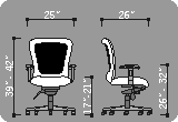 Body mesh upholstered back with mechanical height adjustable lumbar support. Contoured seat cushion with "waterfall" style edge.